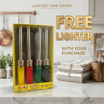 Free long handled gas lighter with coupon code FREELIGHTER at checkout. Offer valid until 31st May 2026.